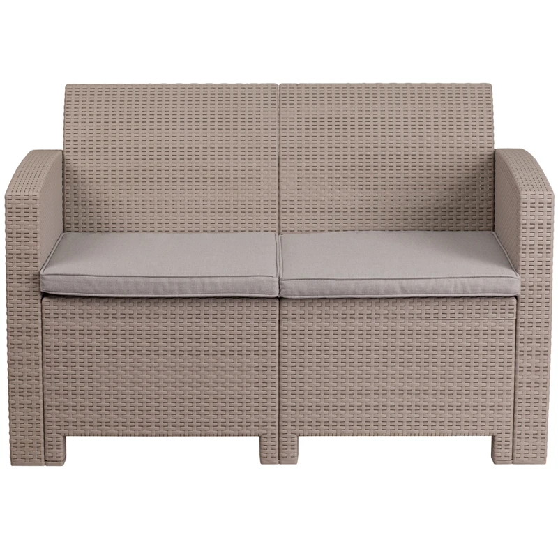 Create an amazing outdoor space with this comfortable and stylish patio loveseat. The durable resin frame offers a stylish appearance which replicates rattan. Deep seating enhances the comfort level. All-weather cushions will hold up all season long. The cushions are zipper removable for washing purposes. Enjoy the outdoors with family and friends and create lasting memories!