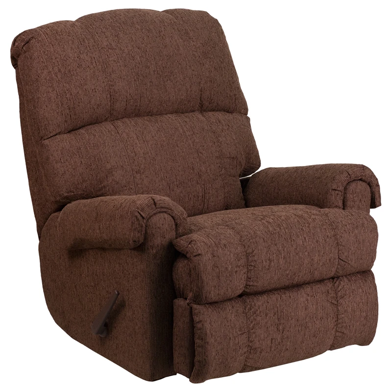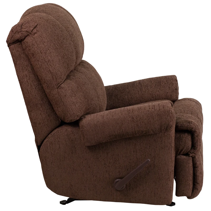 This is an excellent Rocking Recliner that’s made with your comfort in mind. It has been built to just the right dimensions for the average sized person, but it gives all the comfort you would expect from an over-stuffed recliner. Reclining furniture offers the best in relaxation for you to kick up your feet to watch TV, work on a laptop, or to just hang out with family and friends. With a quick pull on the lever you can situate yourself in a comfortable position. Use as a traditional recliner or a soothing rocker that can aide in sleeping and with nursing mothers.