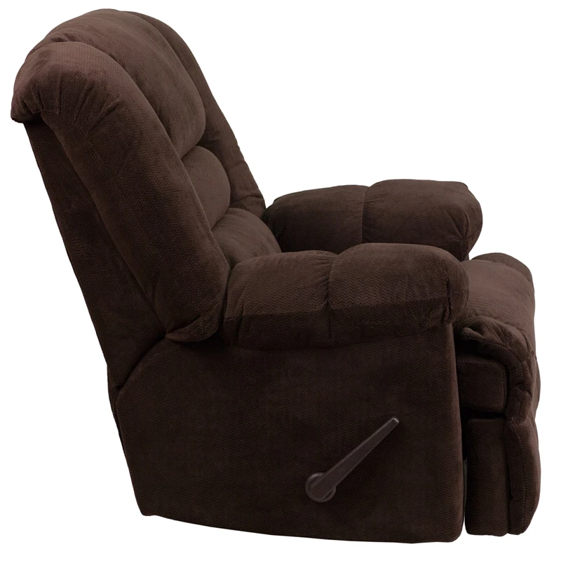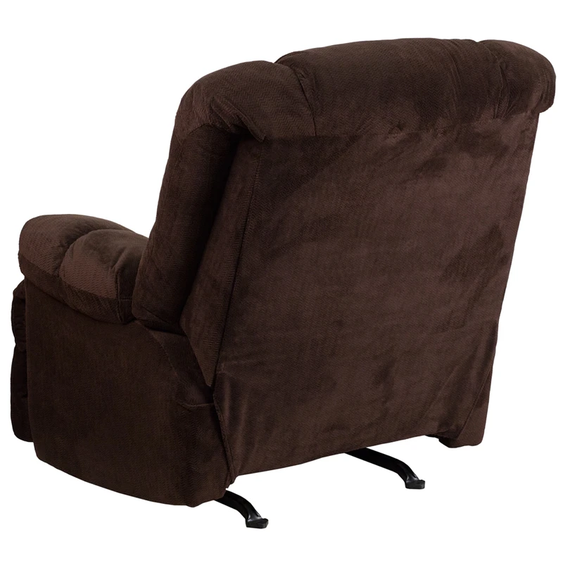 Whether you choose this Rocker Recliner because it has great styling, or because it is a great value, you end up with a winner. The plush microfiber suede upholstery is super soft to the touch and very attractive, and the heavily padded back and head-rest supply extreme comfort. Reclining furniture offers the best in relaxation for you to kick up your feet to watch TV, work on a laptop, or to just hang out with family and friends. With a quick pull on the lever you can situate yourself in a comfortable position. Use as a traditional recliner or a soothing rocker that can aide in sleeping and with nursing mothers. Get cozy and relax in this plush designed recliner.