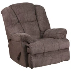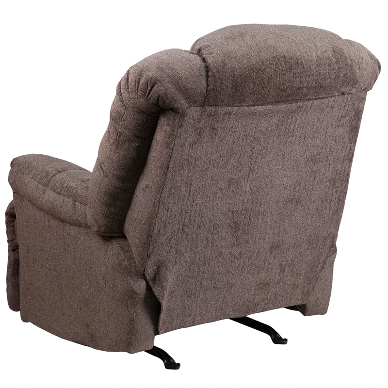 Whether you choose this Rocker Recliner because it has great styling, or because it is a great value, you end up with a winner. The plush chenille upholstery is super soft to the touch and very attractive, and the heavily padded back and head-rest supply extreme comfort. Reclining furniture offers the best in relaxation for you to kick up your feet to watch TV, work on a laptop, or to just hang out with family and friends. With a quick pull on the lever you can situate yourself in a comfortable position. Use as a traditional recliner or a soothing rocker that can aide in sleeping and with nursing mothers. Get cozy and relax in this plush designed recliner.