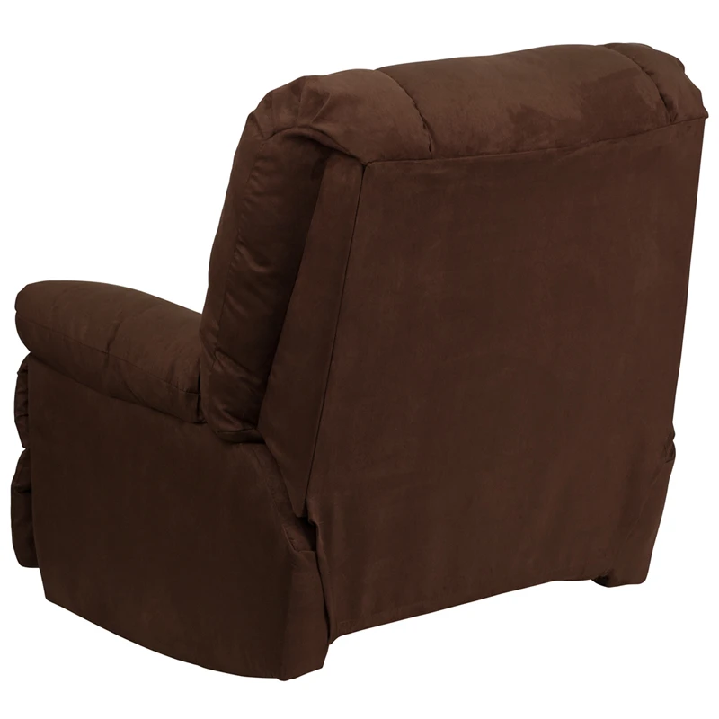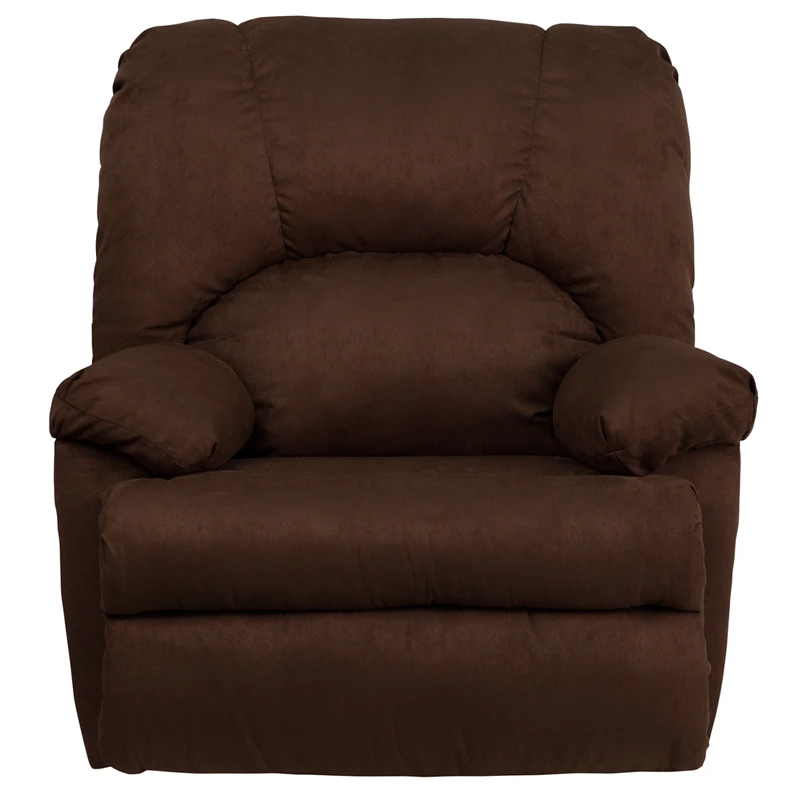 Whether you choose this Rocker Recliner because it has great styling, or because it is a great value, you end up with a winner. The plush microfiber suede upholstery is super soft to the touch and very attractive, and the heavily padded back and head-rest supply extreme comfort. Reclining furniture offers the best in relaxation for you to kick up your feet to watch TV, work on a laptop, or to just hang out with family and friends. With a quick pull on the lever you can situate yourself in a comfortable position. Use as a traditional recliner or a soothing rocker that can aide in sleeping and with nursing mothers. Get cozy and relax in this plush designed recliner.