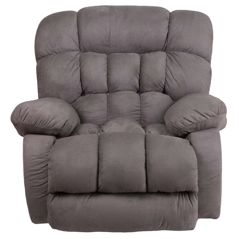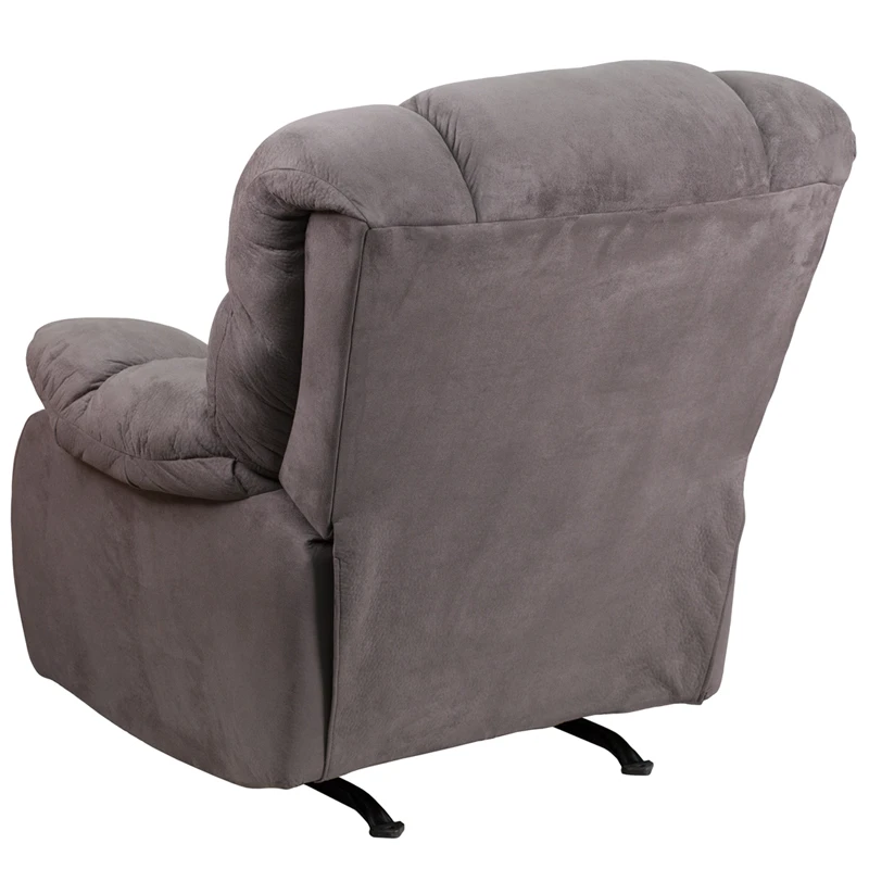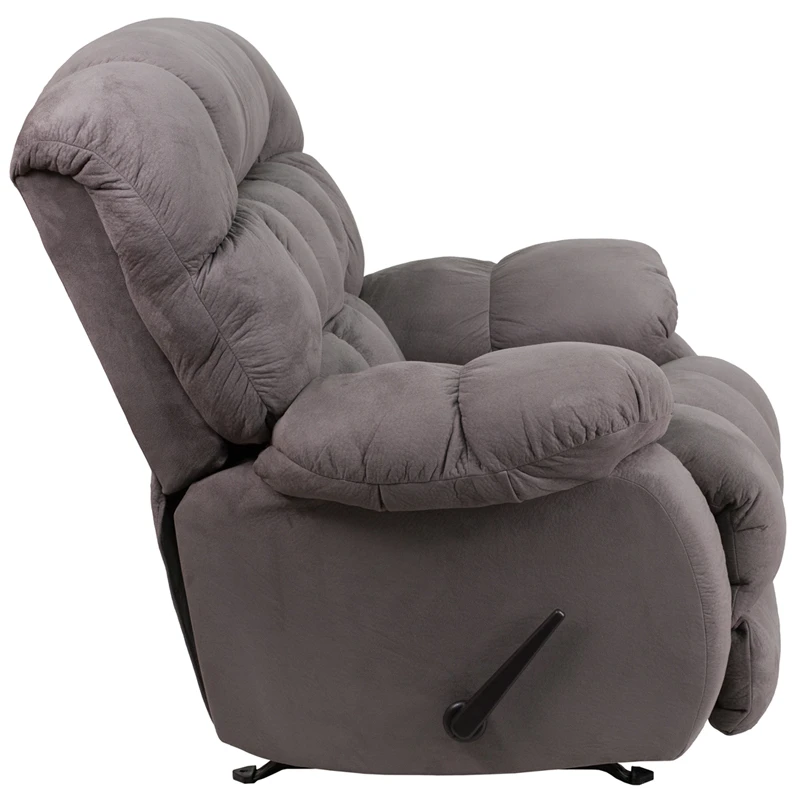 This plush microfiber recliner provides comforting seating with a heavily padded back and arms. Reclining furniture offers the best in relaxation for you to kick up your feet to watch TV, work on a laptop, or to just hang out with family and friends. With a quick pull on the lever you can situate yourself in a comfortable position. Use as a traditional recliner or a soothing rocker that can aide in sleeping and with nursing mothers. Get cozy and relax in this plush designed recliner.