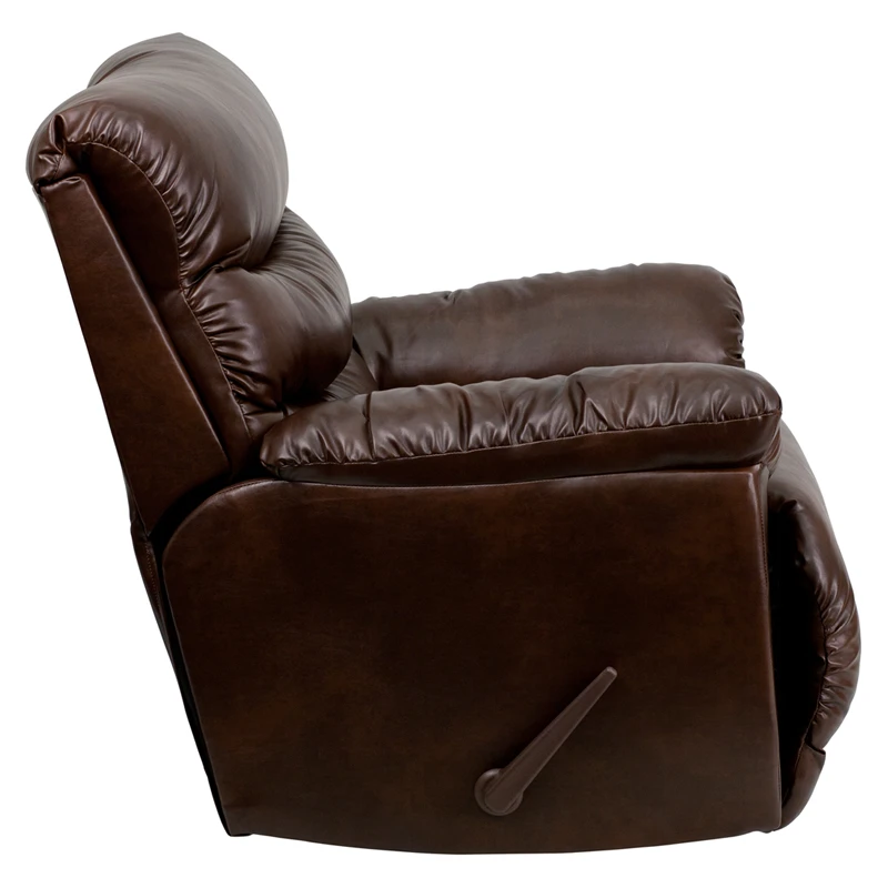 This Rocker Recliner has contemporary looks and top quality construction combined in a very attractive package. Reclining furniture offers the best in relaxation for you to kick up your feet to watch TV, work on a laptop, or to just hang out with family and friends. With a quick pull on the lever you can situate yourself in a comfortable position. Recliners provide good neck and lumbar support, making them the most popular seating choice for everyday use. Thick comfortable padding delivers both relaxing comfort and firm support in all the right places.