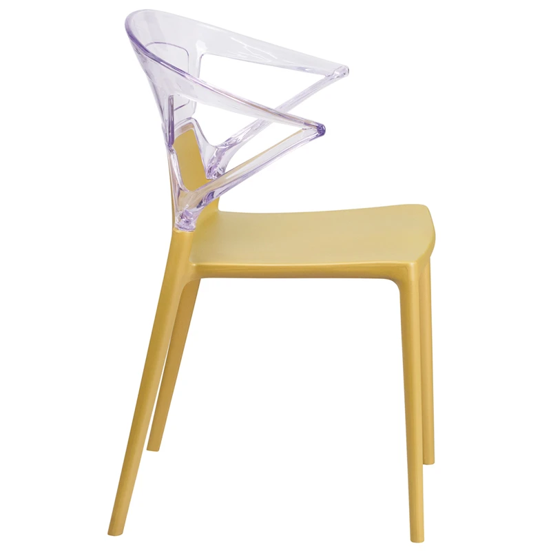 This trendsetter chair will create an artistic statement to any room. The solid colored seat and transparent back provide a creative balance. Due to its stacking capabilities, elegant design and use in indoor and outdoor locale this chair can be used in diverse environments.