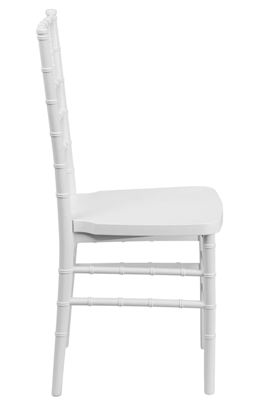 The White Resin Chiavari Chair is ideal for weddings, banquets and special events from casual to the most elegant. Constructed of ultra-strong resin and polycarbonate, this chair is very lightweight, yet extremely strong and wobble-free. The color of the frame is the same all the way through, so you don’t have to worry about cosmetic nicks and scratches ruining the appearance. It’s UV treated to help prevent fading and discoloration. No re-painting or staining is ever needed; your chairs will look great for years to come. These beautiful chairs ship fully assembled, can be stacked 8 high for storage.With its durable, lightweight construction and elegant styling, this Chiavari chair will be the prime seating choice for all of your special events, whether indoors or outside.
