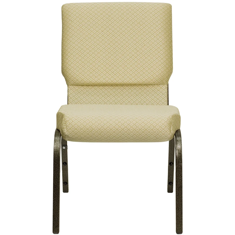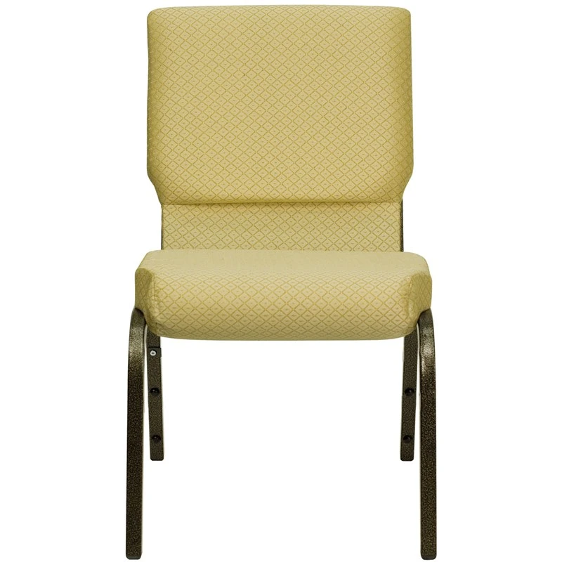 This beautiful church chair will keep your guests comfortable whether you’re hosting an all-day seminar, serving a 10 course meal or delivering your most inspirational sermon. This chair offers an advantage over pew seating with the flexibility of creating different seating configurations.The chair’s cushioned back and 4 inch thick seat are generously padded with CA117 fire retardant foam and covered in durable fabric upholstery. The seat has a waterfall edge that reduces pressure on your attendees’ legs. A convenient book pouch on the back of the chair keeps seminar materials, bibles or hymn books readily available. Built-in ganging brackets connect your chairs and maintain nice, straight rows. Its sturdy 16 gauge steel, gold vein frame, with gracefully angled legs, has been tested to hold up to 800 pounds and plastic rocker glides protect your floor by sliding smoothly when you need to move the chair.This Church Chair is an excellent option for hotel lobbies, banquet halls, conference facilities and worship centers.