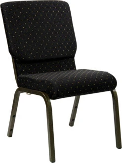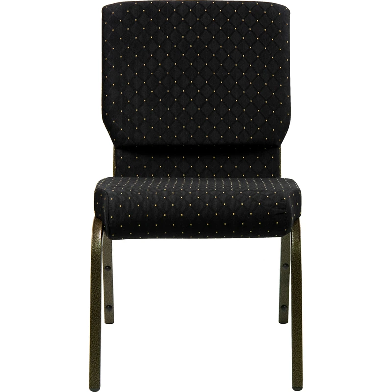 This beautiful church chair will keep your guests comfortable whether you’re hosting an all-day seminar, serving a 10 course meal or delivering your most inspirational sermon. This chair offers an advantage over pew seating with the flexibility of creating different seating configurations.The chair’s cushioned back and 4 inch thick seat are generously padded with CA117 fire retardant foam and covered in durable fabric upholstery. The seat has a waterfall edge that reduces pressure on your attendees’ legs. A convenient book pouch on the back of the chair keeps seminar materials, bibles or hymn books readily available. Built-in ganging brackets connect your chairs and maintain nice, straight rows. Its sturdy 16 gauge steel, gold vein frame, with gracefully angled legs, has been tested to hold up to 800 pounds and plastic rocker glides protect your floor by sliding smoothly when you need to move the chair.This Church Chair is an excellent option for hotel lobbies, banquet halls, conference facilities and worship centers.