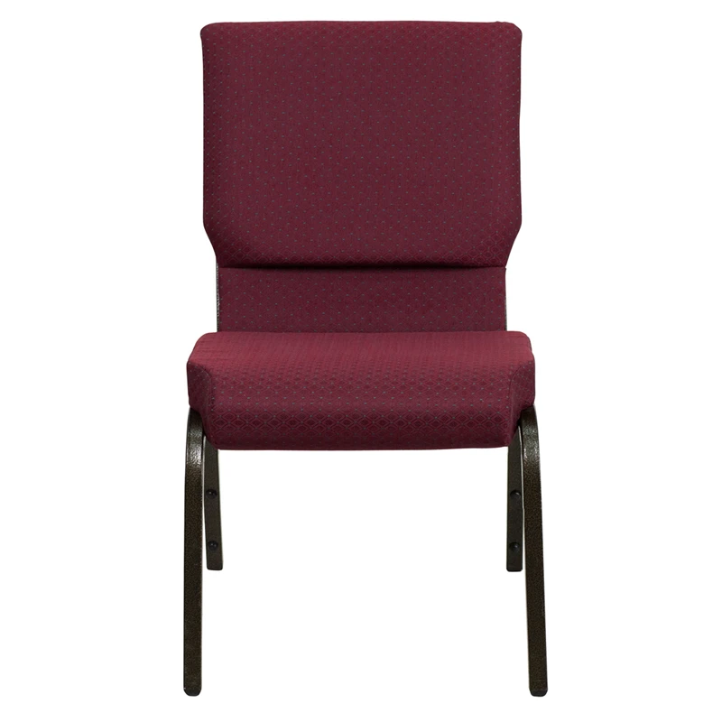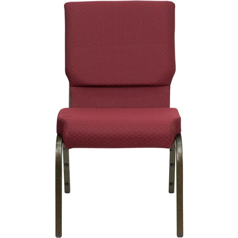 This beautiful church chair will keep your guests comfortable whether you’re hosting an all-day seminar, serving a 10 course meal or delivering your most inspirational sermon. This chair offers an advantage over pew seating with the flexibility of creating different seating configurations.The chair’s cushioned back and 4 inch thick seat are generously padded with CA117 fire retardant foam and covered in durable fabric upholstery. The seat has a waterfall edge that reduces pressure on your attendees’ legs. A convenient book pouch on the back of the chair keeps seminar materials, bibles or hymn books readily available. Built-in ganging brackets connect your chairs and maintain nice, straight rows. Its sturdy 16 gauge steel, gold vein frame, with gracefully angled legs, has been tested to hold up to 800 pounds and plastic rocker glides protect your floor by sliding smoothly when you need to move the chair.This Church Chair is an excellent option for hotel lobbies, banquet halls, conference facilities and worship centers.