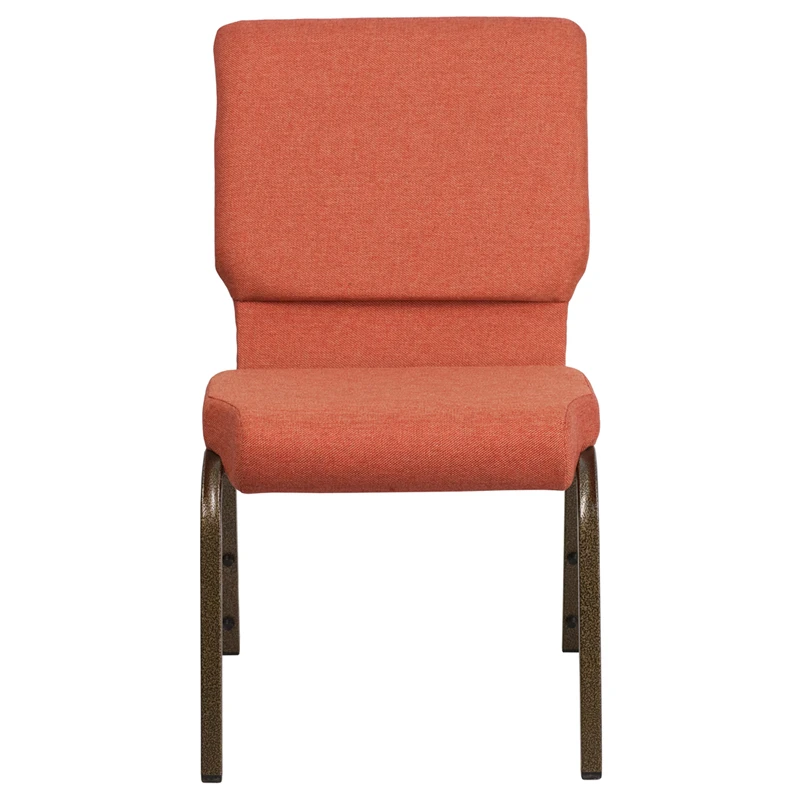 This beautiful church chair will keep your guests comfortable whether you’re hosting an all-day seminar, serving a 10 course meal or delivering your most inspirational sermon. This chair offers an advantage over pew seating with the flexibility of creating different seating configurations.The chair’s cushioned back and thick seat are generously padded with CA117 fire retardant foam and covered in durable fabric upholstery. The seat has a waterfall edge that reduces pressure on your attendees’ legs. A convenient book pouch on the back of the chair keeps seminar materials, bibles or hymn books readily available. Built-in ganging brackets connect your chairs and maintain nice, straight rows. Its sturdy 16 gauge steel, gold vein frame, with gracefully angled legs, has been tested to hold up to 800 pounds and plastic rocker glides protect your floor by sliding smoothly when you need to move the chair.This Church Chair is an excellent option for hotel lobbies, banquet halls, conference facilities and worship centers.