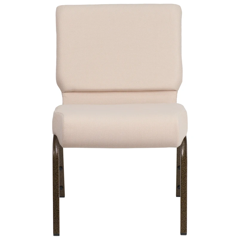 This beautiful church chair will keep your guests comfortable whether you’re hosting an all-day seminar, serving a 10 course meal or delivering your most inspirational sermon. This chair offers an advantage over pew seating with the flexibility of creating different seating configurations.The chair’s cushioned back and 4 inch thick seat are generously padded with CA117 fire retardant foam and covered in durable fabric upholstery. The spacious, 21 inch wide seat has a waterfall edge that reduces pressure on your attendees’ legs. A convenient book pouch on the back of the chair keeps seminar materials, bibles or hymn books readily available. Built-in ganging brackets connect your chairs and maintain nice, straight rows. Its sturdy 16 gauge steel, gold vein frame, with gracefully angled legs, has been tested to hold up to 800 pounds and plastic rocker glides protect your floor by sliding smoothly when you need to move the chair.This Church Chair is an excellent option for hotel lobbies, banquet halls, conference facilities and worship centers.