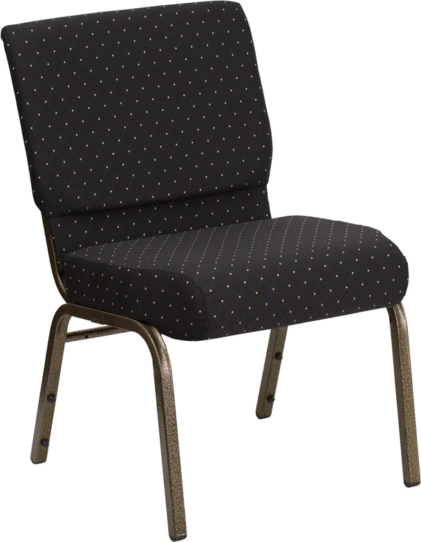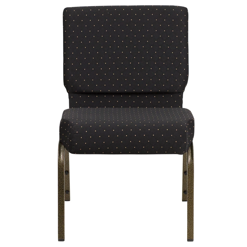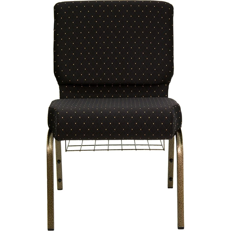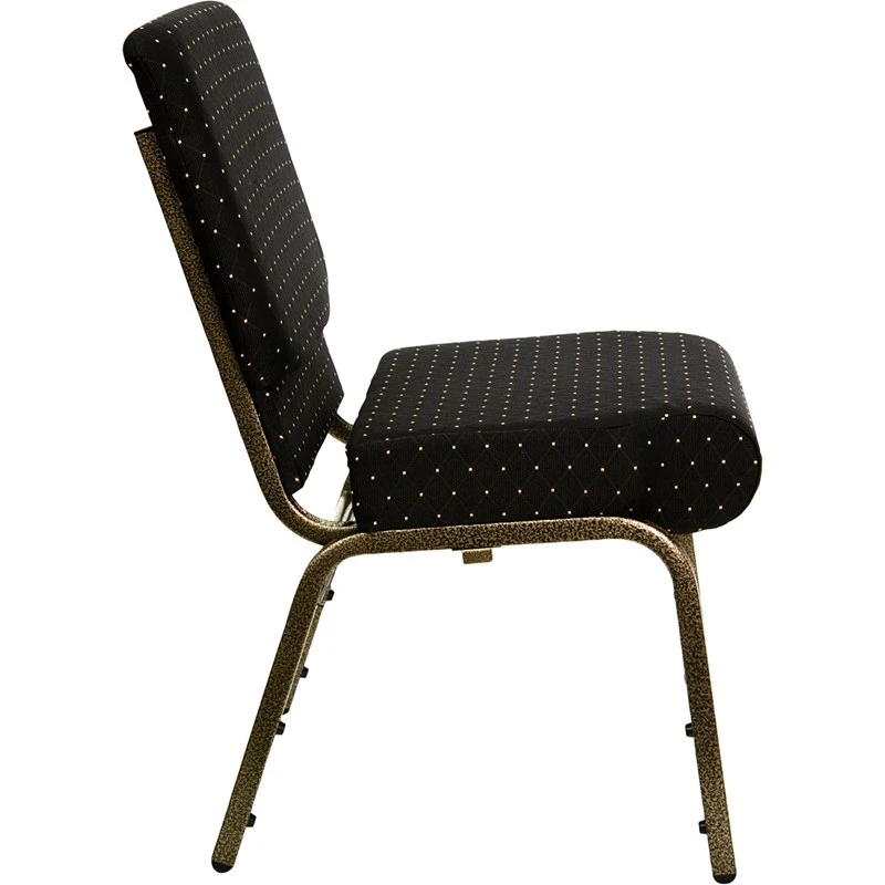 This beautiful church chair will keep your guests comfortable whether you’re hosting an all-day seminar, serving a 10 course meal or delivering your most inspirational sermon. This chair offers an advantage over pew seating with the flexibility of creating different seating configurations.The chair’s cushioned back and 4 inch thick seat are generously padded with CA117 fire retardant foam and covered in durable fabric upholstery. The spacious, 21 inch wide seat has a waterfall edge that reduces pressure on your attendees’ legs. A convenient book pouch on the back of the chair keeps seminar materials, bibles or hymn books readily available. Built-in ganging brackets connect your chairs and maintain nice, straight rows. Its sturdy 16 gauge steel, gold vein frame, with gracefully angled legs, has been tested to hold up to 800 pounds and plastic rocker glides protect your floor by sliding smoothly when you need to move the chair.This Church Chair is an excellent option for hotel lobbies, banquet halls, conference facilities and worship centers.