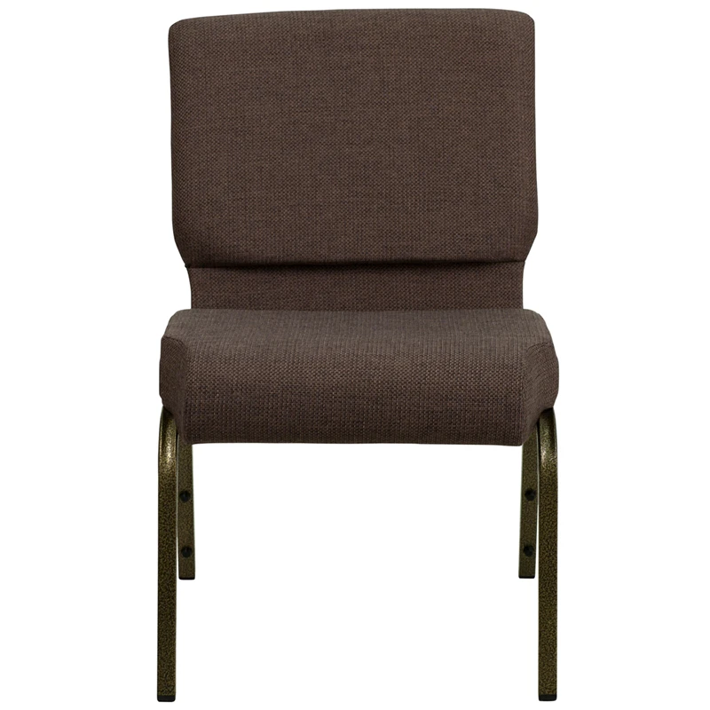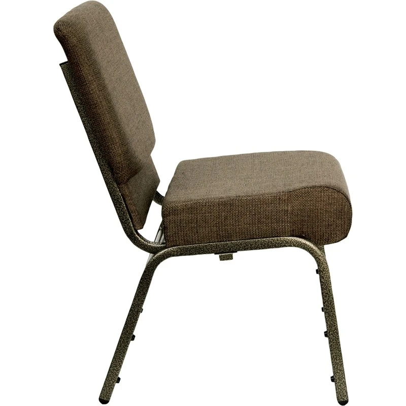 This beautiful church chair will keep your guests comfortable whether you’re hosting an all-day seminar, serving a 10 course meal or delivering your most inspirational sermon. This chair offers an advantage over pew seating with the flexibility of creating different seating configurations.The chair’s cushioned back and 4 inch thick seat are generously padded with CA117 fire retardant foam and covered in durable fabric upholstery. The spacious, 21 inch wide seat has a waterfall edge that reduces pressure on your attendees’ legs. A convenient book pouch on the back of the chair keeps seminar materials, bibles or hymn books readily available. Built-in ganging brackets connect your chairs and maintain nice, straight rows. Its sturdy 16 gauge steel, gold vein frame, with gracefully angled legs, has been tested to hold up to 800 pounds and plastic rocker glides protect your floor by sliding smoothly when you need to move the chair.This Church Chair is an excellent option for hotel lobbies, banquet halls, conference facilities and worship centers.