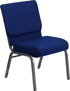 This beautiful church chair will keep your guests comfortable whether you’re hosting an all-day seminar, serving a 10 course meal or delivering your most inspirational sermon. This chair offers an advantage over pew seating with the flexibility of creating different seating configurations.The chair’s cushioned back and 4 inch thick seat are generously padded with CA117 fire retardant foam and covered in durable fabric upholstery. The spacious, 21 inch wide seat has a waterfall edge that reduces pressure on your attendees’ legs. A convenient book pouch on the back of the chair keeps seminar materials, bibles or hymn books readily available. Built-in ganging brackets connect your chairs and maintain nice, straight rows. Its sturdy 16 gauge steel, silver vein frame, with gracefully angled legs, has been tested to hold up to 800 pounds and plastic rocker glides protect your floor by sliding smoothly when you need to move the chair.This Church Chair is an excellent option for hotel lobbies, banquet halls, conference facilities and worship centers.