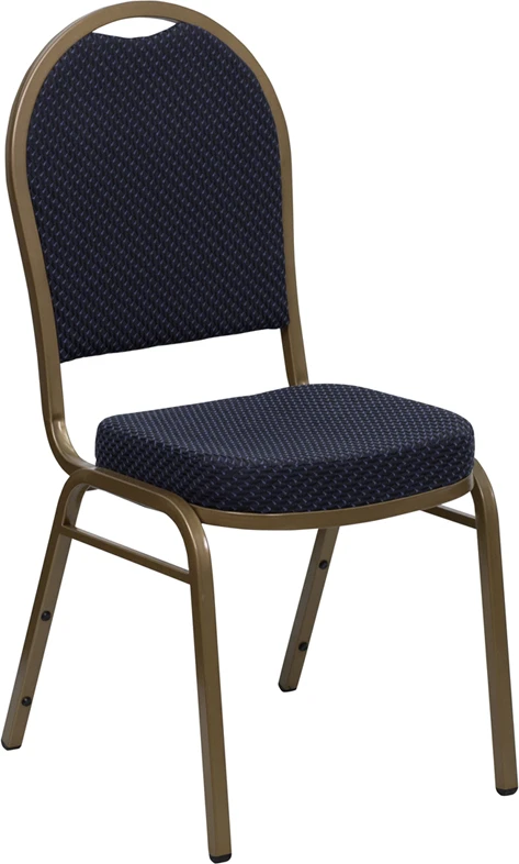 This commercial grade banquet chair with dome back design fits well in formal and casual settings from wedding ceremonies to corporate meetings and awards banquets.The chair’s cushioned back and 2.5 inch thick seat are padded with CA117 fire retardant foam and covered in beautiful fabric upholstery. Its sturdy, 16 gauge steel, powder coated frame, with gracefully angled legs, has been tested to hold up to 500 pounds. Double support braces reinforce the frame to give it great strength and durability. Bumper guards prevent scratches on the frame when stacked (up to 15 high) and non-marring floor glides protect your floor by sliding smoothly when you need to move the chair.This durable Banquet Chair is an excellent option for churches, banquet halls, training rooms, hotels, convention centers and schools.