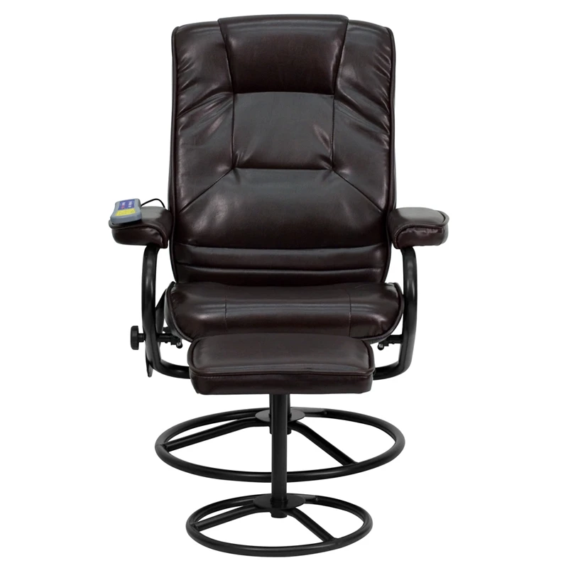 Enjoy a relaxing massage in the comfort of your own home or office with this recliner and ottoman set. This set offers maximum massaging power that massages your back, lumbar area and thighs. With three intensity levels and five massage modes you are sure to get the comfort that you’re looking for. Look no further for your perfect massage chair offered at an incredible price!