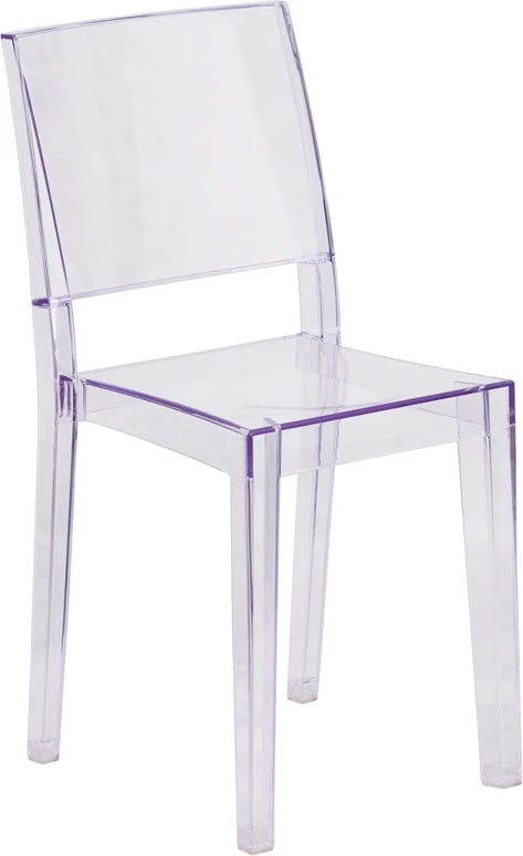 Create a beautiful and artistic statement with this transparent accent chair. Provide a grand statement and lighten up the room. The transparency of the chair allows it to take up less space visually as with a solid chair. This chair was crafted with an ingenious combination of lightness and strength. Due to its stacking capabilities, elegant design and use in indoor and outdoor locale this chair can be used in diverse environments.