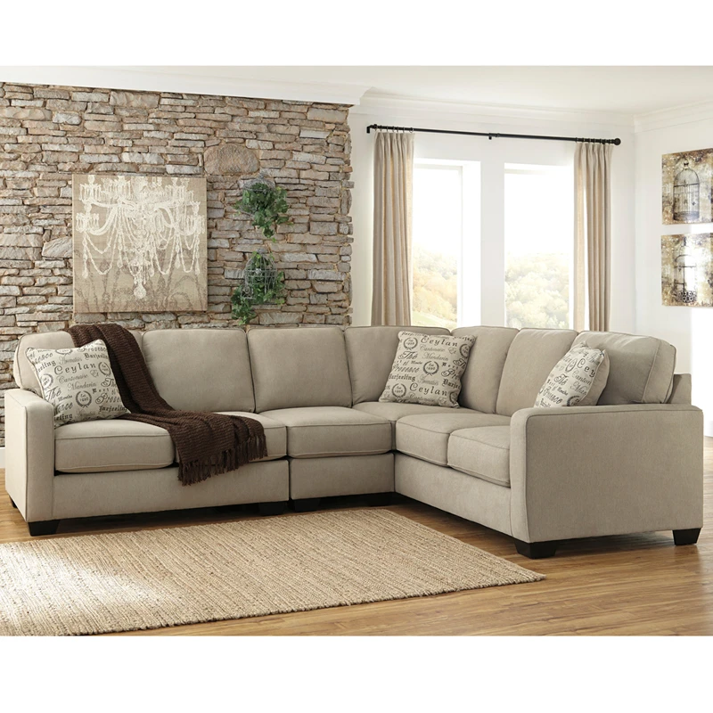 Merging a decidedly clean profile with cozy comfort, this sectional is high style made for real living. Neatly tailored box cushions and crisp, track arms beautifully enhance the aesthetic, while a fresh hued microfiber upholstery simply works. Script pillows are a posh touch.