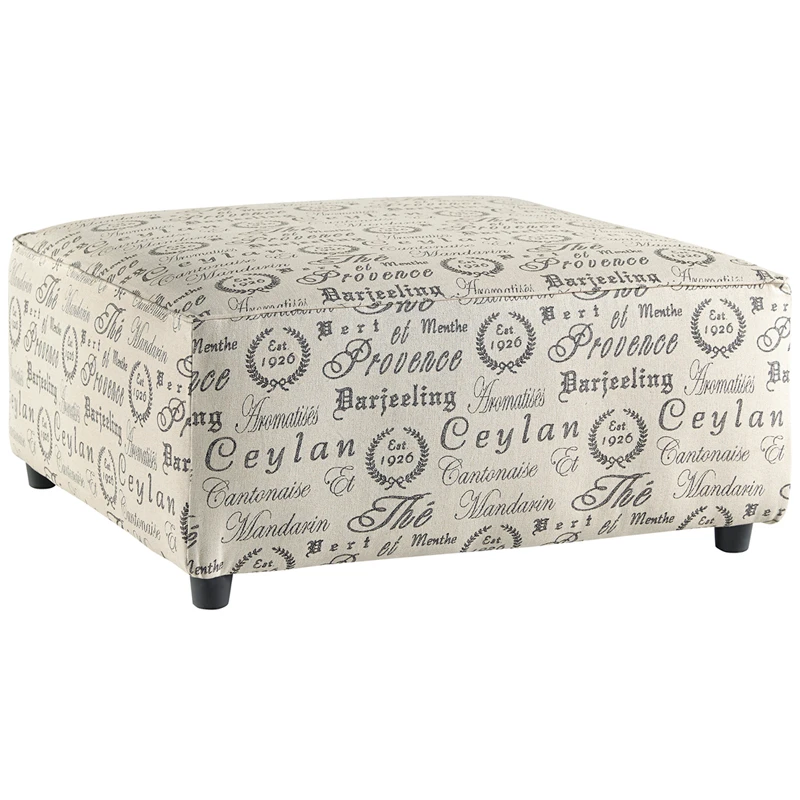 Celebrate your worldly good taste and flair for tres chic twists with an oversized ottoman. With its generous scale and fanciful French scripting, it speaks the language of casually cool style. Pair with your sectional or use as an accent piece.