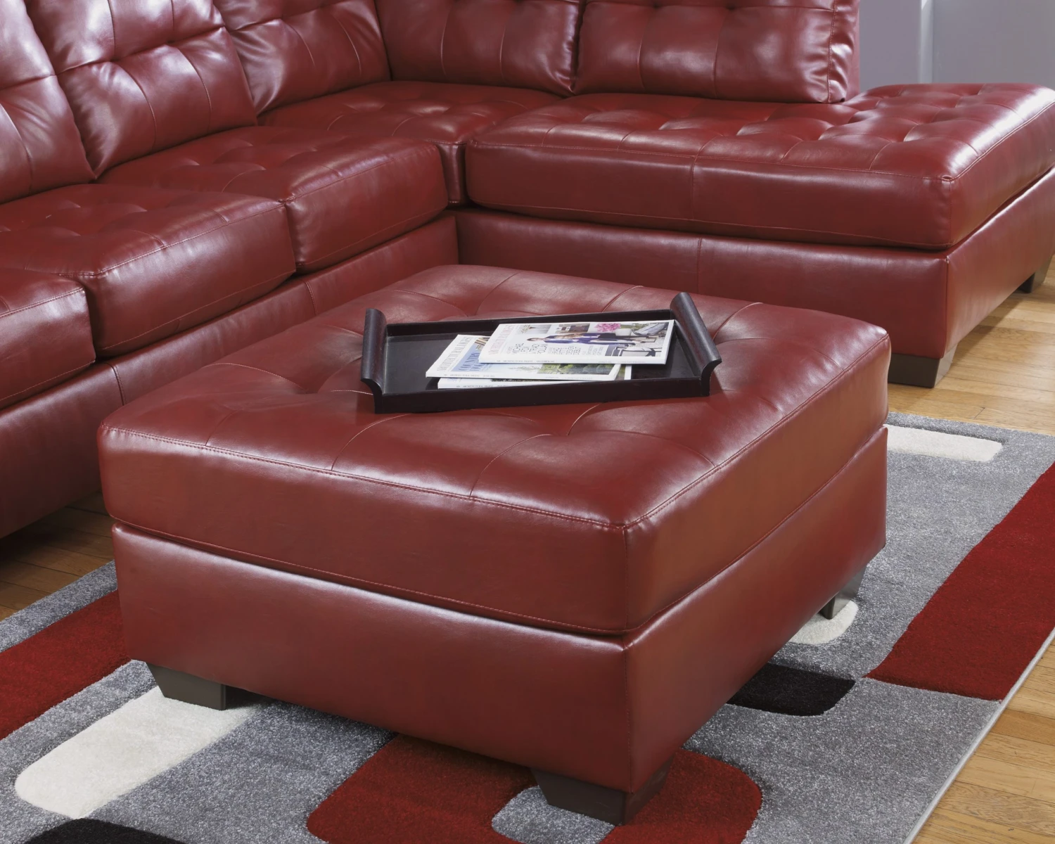 DuraBlend®/Match upholstery features DuraBlend® upholstery in the seating areas with skillfully matched vinyl everywhere else. With the supportive back and seat cushions stylishly adorned with tufted detailing along with the thick padded arms, the Alliston DuraBlend®-Salsa upholstery collection features rich DuraBlend® upholstery that beautifully enhances the sleek contemporary design without sacrificing the comfort you desire.