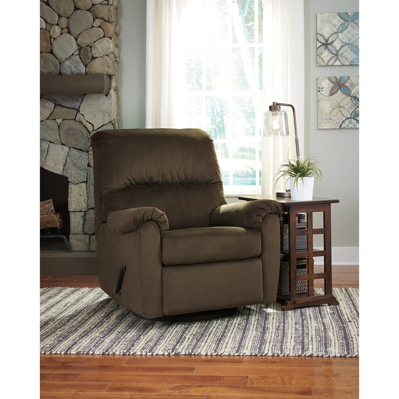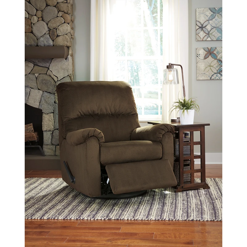 With a 360-degree turning radius, this recliner takes a cool spin on contemporary style and sumptuous comfort. Divided back puts pillow plushness and support right where it’s needed most, in a richly tailored way. Subtle and sophisticated, the neutral textural upholstery easily blends with a wide range of color schemes.