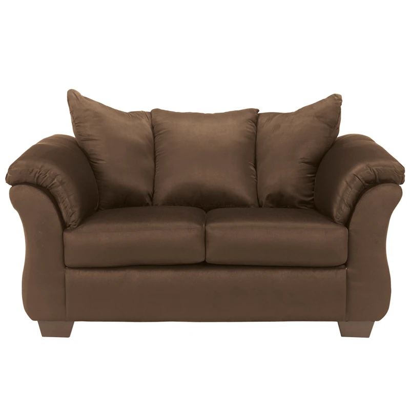 Talk about fine lines and great curves. That’s the beauty of this loveseat, made to suit your appreciation for clean, contemporary style. A striking flared frame, comfy pillow top armrests and an ultra-soft upholstery that holds up to everyday living complete this fashion statement.