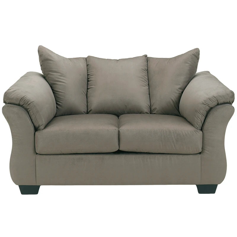 Talk about fine lines and great curves. That’s the beauty of this loveseat, made to suit your appreciation for clean, contemporary style. A striking flared frame, comfy pillow top armrests and an ultra-soft upholstery that holds up to everyday living complete this fashion statement.
