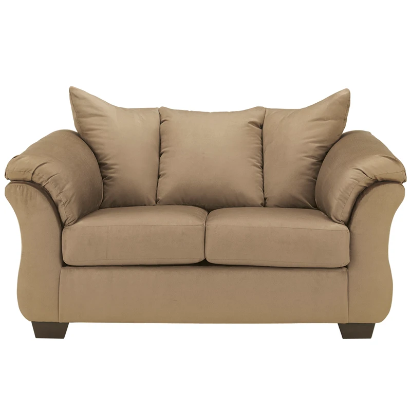 Talk about fine lines and great curves. That’s the beauty of this loveseat, made to suit your appreciation for clean, contemporary style. A striking flared frame, comfy pillow top armrests and an ultra-soft upholstery that holds up to everyday living complete this fashion statement.
