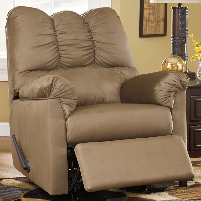 Talk about fine lines and great curves. That’s the beauty of this recliner, made to suit your appreciation for clean, contemporary style. Comfy pillow top armrests and an ultra-soft upholstery that holds up to everyday living complete this fashion statement. So get comfortable and kick up your feet to relax or hang out with family and friends.