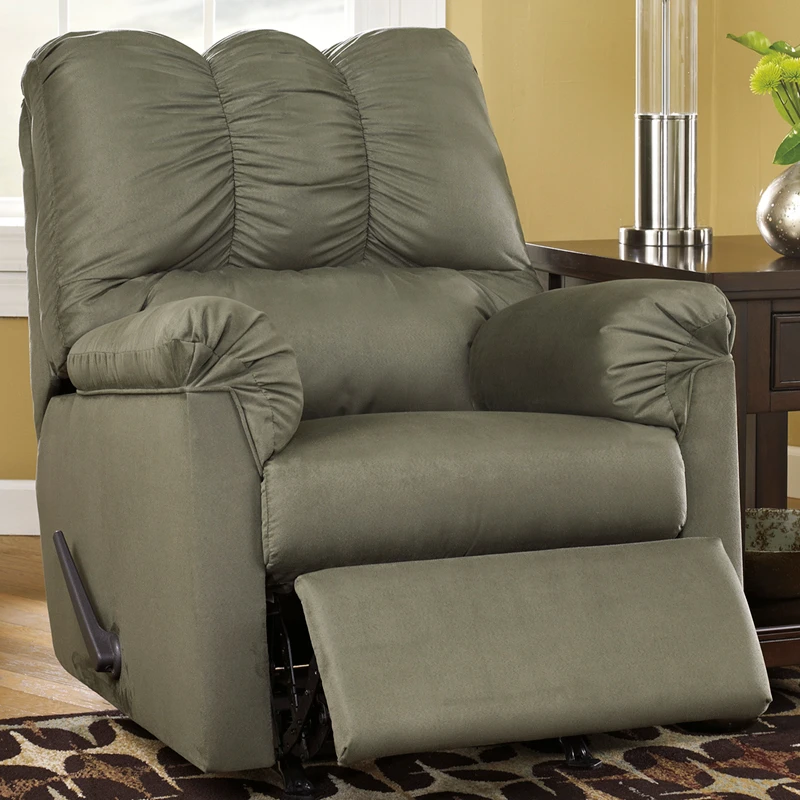 Talk about fine lines and great curves. That’s the beauty of this recliner, made to suit your appreciation for clean, contemporary style. Comfy pillow top armrests and an ultra-soft upholstery that holds up to everyday living complete this fashion statement. So get comfortable and kick up your feet to relax or hang out with family and friends.