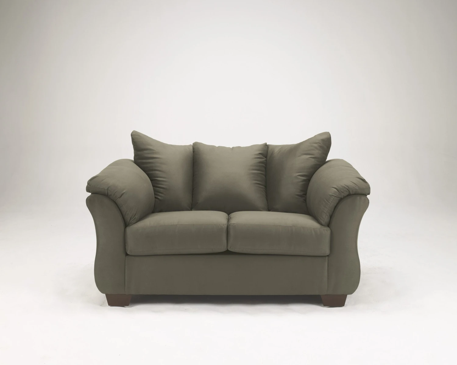 With the exciting contemporary style of the sweeping padded arms and plush pillow back design, the sleek beauty of the Darcy-Sage upholstery collection is sure to awaken the décor of any home environment while offering the comfort that you have been searching for.