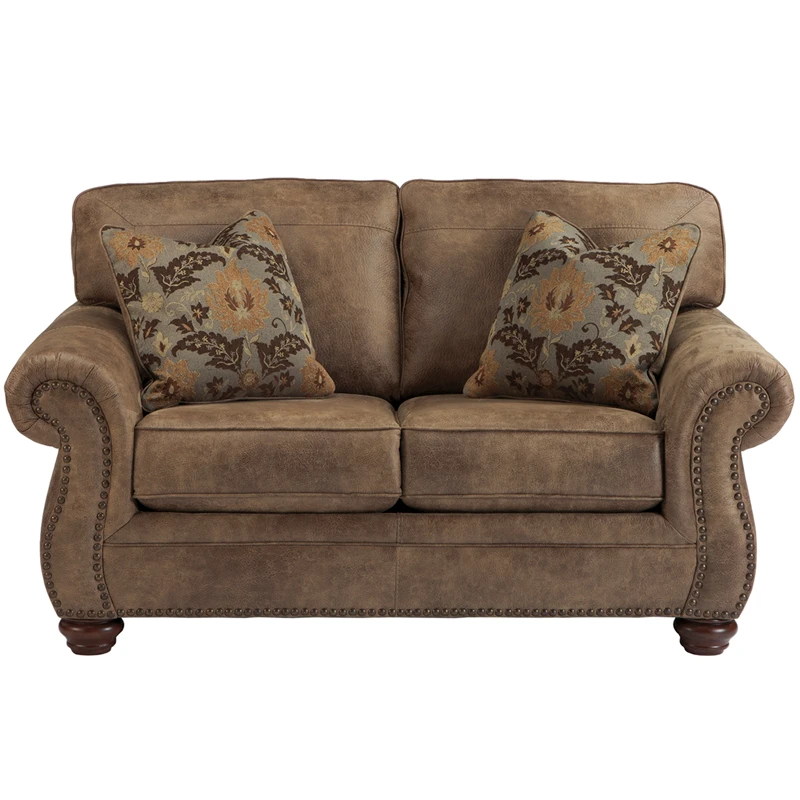 Dramatically transform your living space with the rustic look of weathered leather you love at a fraction of the cost. That’s the beauty of this Faux Leather loveseat. Washed in earthy Southwestern tones, with generous back and seating support and jumbo window-pane stitching, it envelops you in comfort and quality. Classic elements such as rolled arms and turned feet bring in just enough traditional touch.