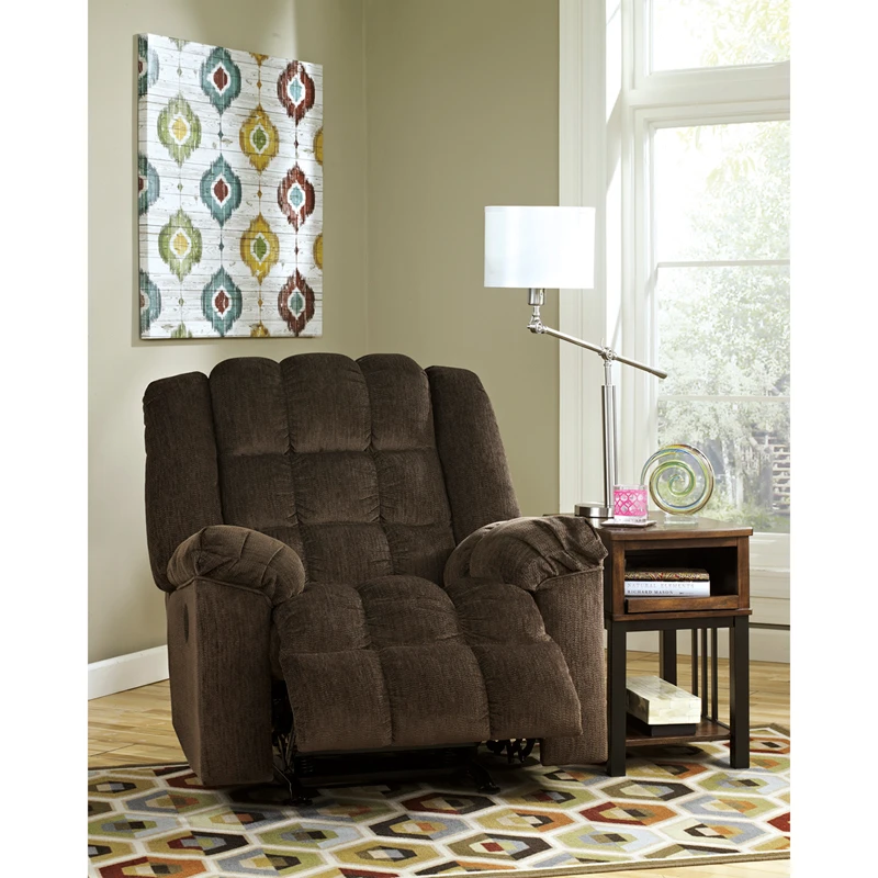 An ”easy chair” that’s wonderfully easy on the body and the budget. This power recliner delights the senses with ultra plush upholstery in a handsomely textured twill. Divided bustle design and puckered stitching meld comfort and style. Ample pillow top armrests make it an all-the-more restful place to unwind. And with one-touch power control, you’ve got an infinite number of ways to recline at your fingertips.