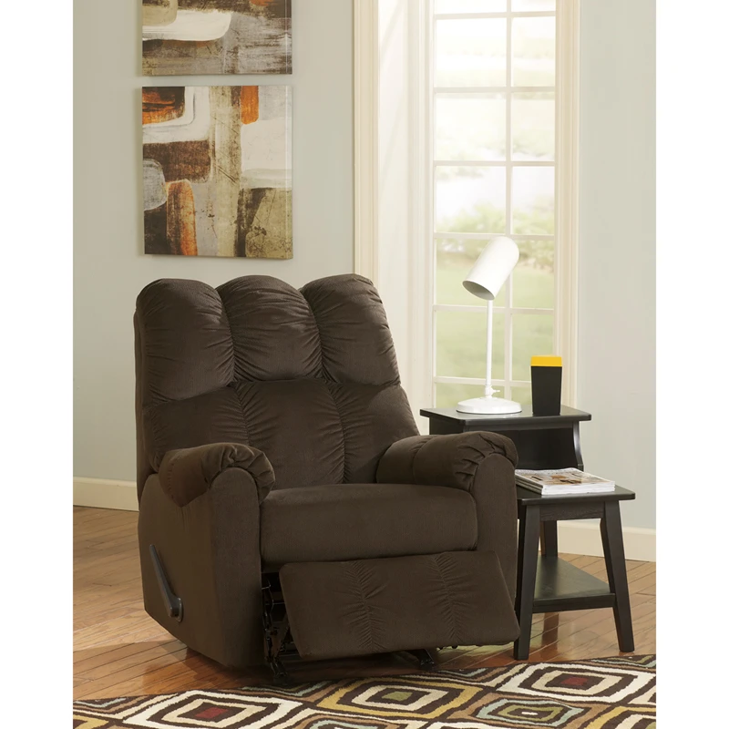 This recliner is exactly what you and everyone else in your immediate circle deserves at the end of a long day. Lofty cushions on the high-back frame pamper your neck, torso, arms and legs. One-touch pull reclines the seat and extends the leg rest for less pressure on knees, hips and other joints.