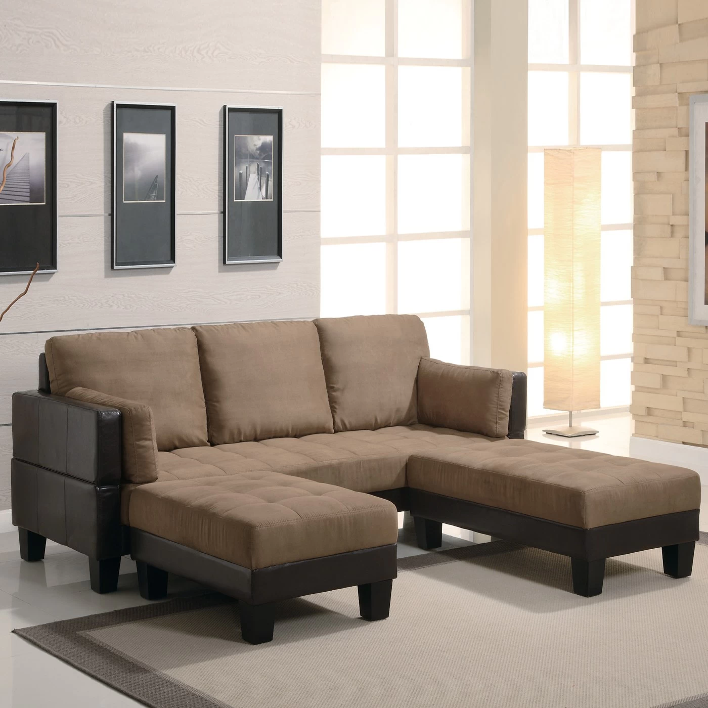 This sofa offers comfortable seating as well as the ability to convert the sofa into a bed. With the included ottomans you can easily add a sleeping solution to your living room when guests come over. Wrapped in microfiber and vinyl base.